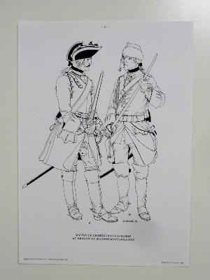 • Grandier du Régiment de Piémont et Fusilier du Régiment royal des vaisseaux (en noir)
