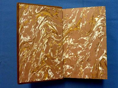 RELIURE : reliure moderne de type skyvertex de couleur marron, dos à 4 nerfs à 2 pièces de titre, pages de garde marbrées couleurs, tranchefile