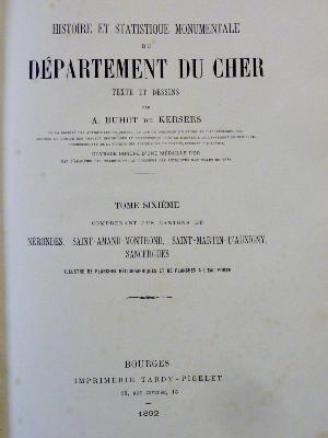 TITRE : Histoire et Statistique monumentale du département du Cher cantons de Nérondes, Saint-Amand-Montrond, Saint-Martin-d’Auxigny, Sancergues