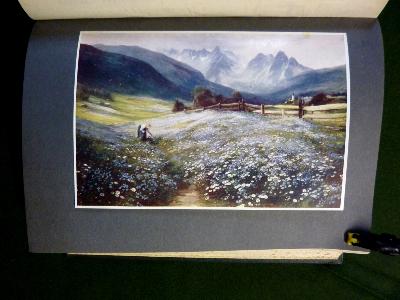 RELIURE : demi-reliure, plats percaline de couleur verte avec décor à froid, dos lisse à décor à froid, pages de garde illustrées couleurs, tranchefile