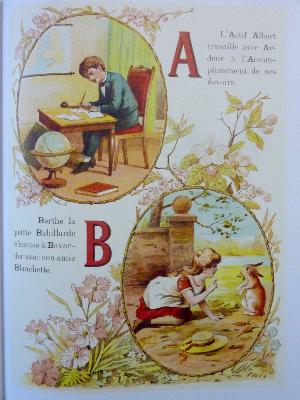 Thèmes : éducation, enfantina, arts graphiques, alphabet, lecture, livre