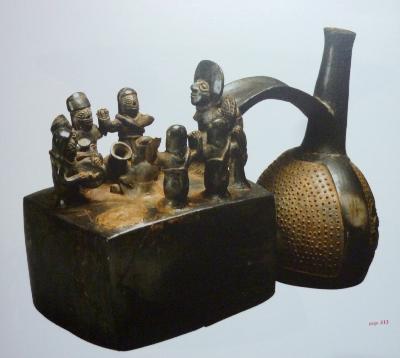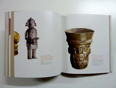 " Voici un monde peuplé de sons, d'images, de couleurs, d'odeurs et de sensations, un monde animal, végétal et minéral dont les bienfaits et imperfections sont à l'origine des croyances religieuses, mystiques et terrestres. C'est en partie dans les objets en métal que les croyances de l'ancien Pérou se manifestent. La lumière qui émane d'un matériau le relie aux esprits et aux forces de l'univers : il n'est pas étonnant que l'or, métal inaliénable dont l'éclat est aveuglant lorsqu'il brille au soleil, ait fasciné les hommes au point de donner lieu à une infinité de mythes et à des œuvres d'art de toute beauté. " Paloma Carcedo de Mufarech. En provenance des plus importants musées péruviens, découvrez des oeuvres d'art en métal, des sculptures en bois, des objets en terre cuite et des textiles qui expriment la grandeur et la richesse des civilisations de l'ancien Pérou. Signés par les plus grands spécialistes, les textes nous éclairent sur trois mille ans de cultures préhispaniques (chavin, mochica, chimû ou inca) et leur relation si particulière avec l'or.