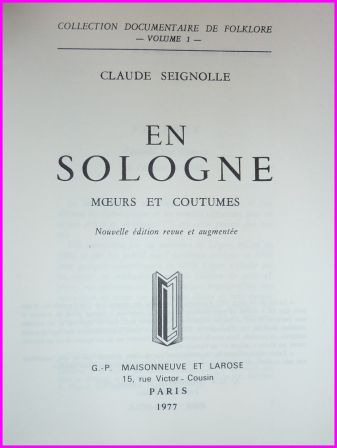 THÈME (S) : régionalisme – folklore – coutumes – région centre – Sologne - croyances
