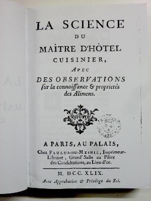 Paru sans nom d'auteur il est précédé d'une importante" Dissertation préliminaire sur la cuisine moderne". Ouvrage capital composé par Menon pour les praticiens de la gastronomie, ici il n'est plus question de recettes faciles présentées dans sa "cuisinière bourgeoise" de 1746.