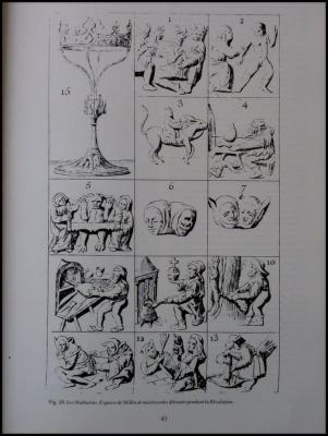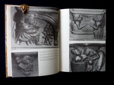Les motifs des stalles (qui s'adressent non aux laïcs mais au corps de clercs et moines qui seuls ont accès au chœur de l'église), et tout particulièrement ceux des appuis-mains et des miséricordes, trouvent en grande partie leurs origines dans la gravure, la sculpture et la peinture de manuscrits religieux (marges de missels, psautiers, livres d'heures entre le 13ème siècle et la fin du 15ème siècle), c'est-à-dire les mêmes sources culturelles que les clercs.