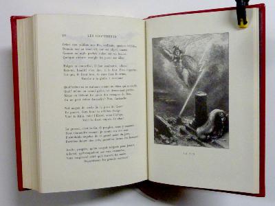 RELIURE : superbe reliure éditeur plein cuir de couleur rouge avec motifs à froid sur les plats, dos lisse avec fausse pièce de titre (portrait de l’auteur) et auteur tomaison et titre en caractères dorés, tranche supérieure dorée, tranchefile, pages de garde illustrées couleurs